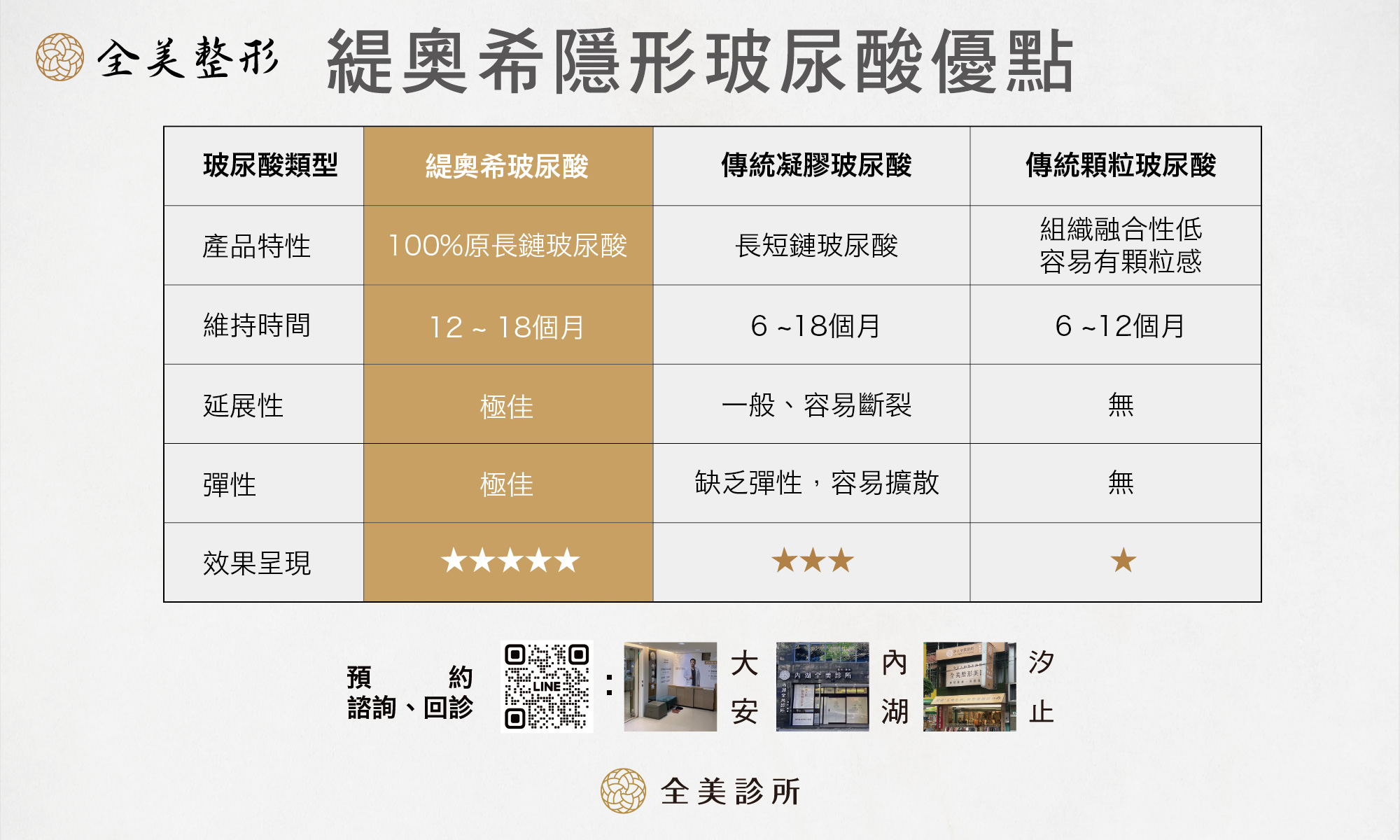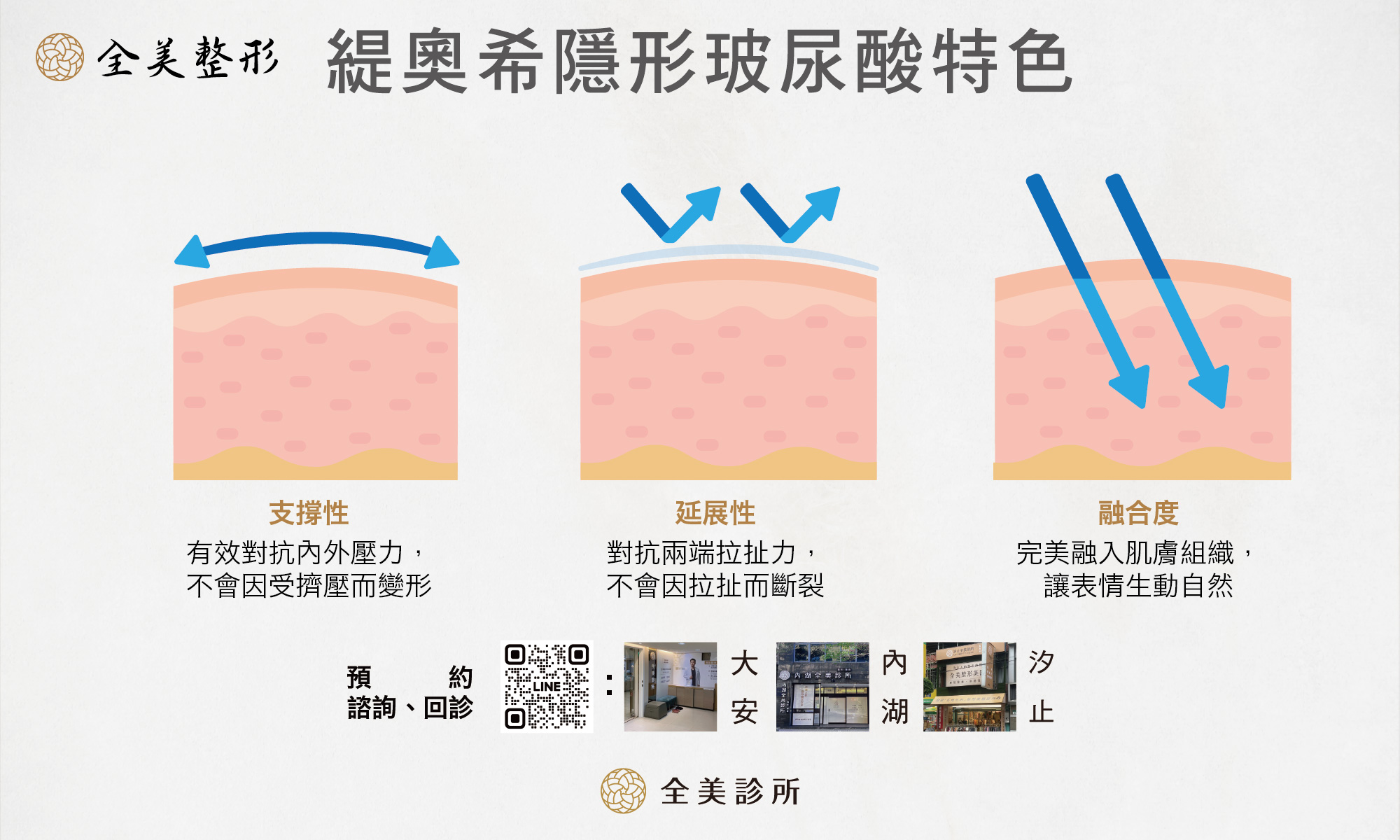 玻尿酸的應用非常地廣,可拿來做整體的輪廓拉提,也可以進行小範圍的操作。無論是想要立體的鼻樑還是蘋果肌的填補,都能使用玻尿酸達到改善。